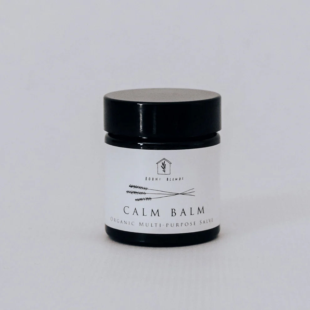This magic little pot is filled with a skin nourishing salve. Infused with a blend of healing and calming botanical oils, the calm balm is an all purpose wonder balm. use as a massage balm, gently rub into temples as a meditation aid, dab on to pulse points as a solid perfume or simply use to soothe areas of dry or irritated skin. 30ML