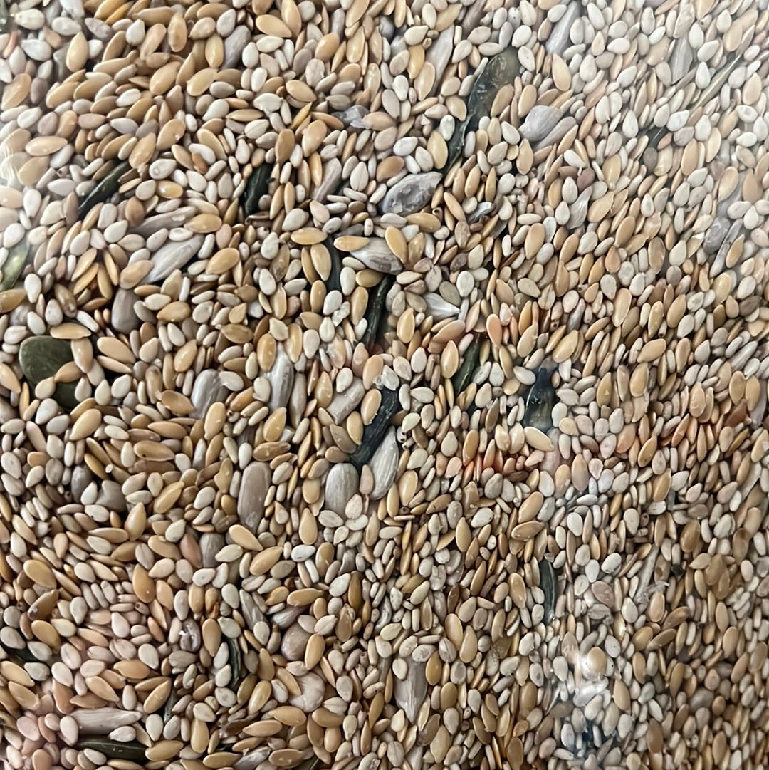 Ingredients: organic sunflower seeds, pumpkin seeds, golden linseed, sesame seeds