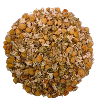 Chamomile helps to sleep (prevent sleep apnea and restless sleep), can improve digestion and prevent cancer. It has anti-inflammatory properties and may improve heart health (reduce blood pressure). Chamomile may boost immune system, and relieve stress and anxiety. It may help prevent osteoporosis (increases bone density) and can help with hemorrhoids.