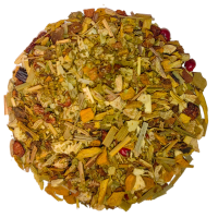 Ingredients: Ginger bits, apple bits, turmeric, moringa leaves, cinnamon liquorice root, lemongrass, natural flavouring, fennel, rose pepper, ginseng root