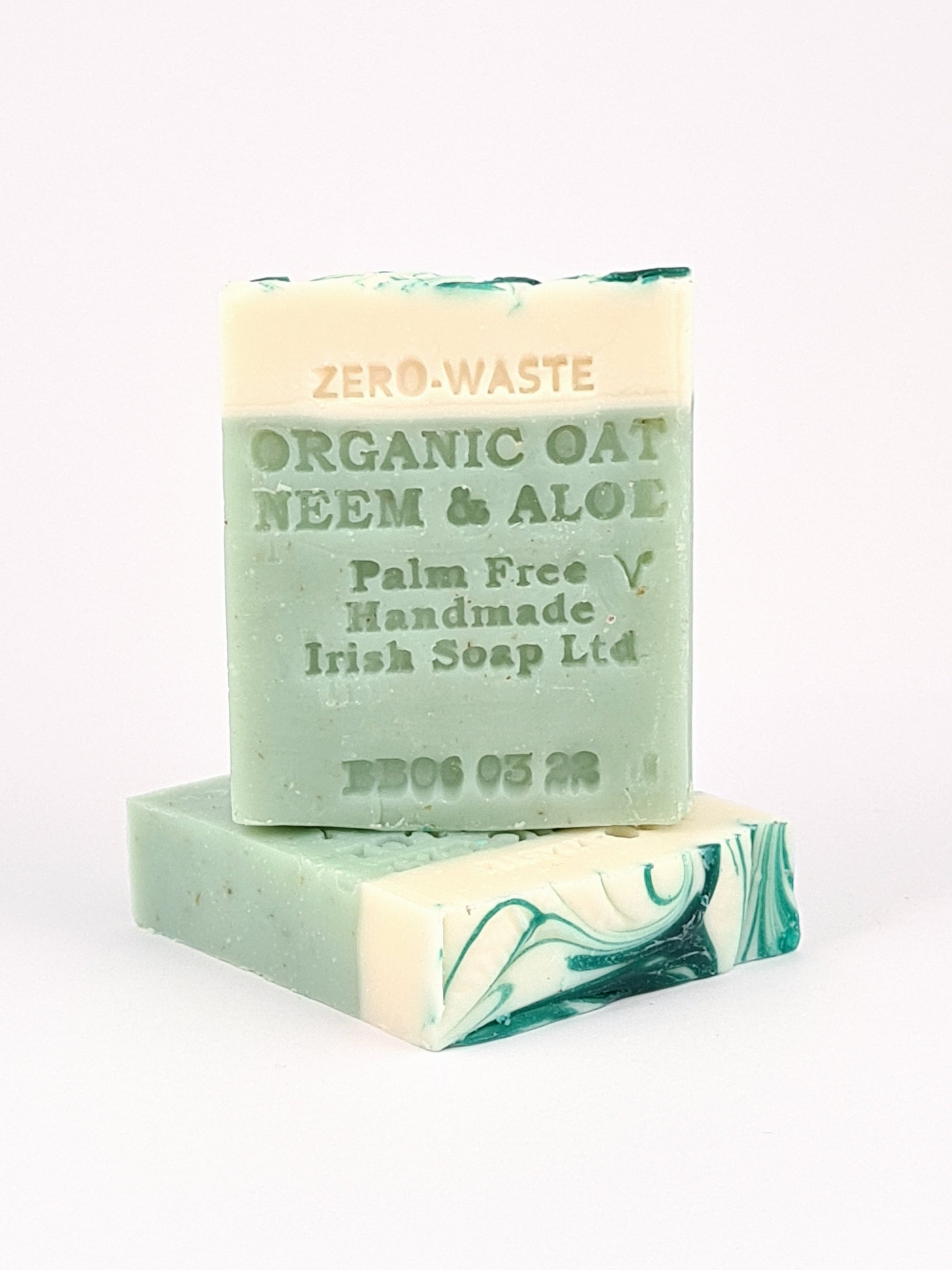 Made from a range of exotic natural ingredients this bar of natural goodness combines emollient Organic Cold Pressed Neem Oil with home grown Aloe Vera Gel, blended with a plentiful supply of Fresh Irish Rainwater. This cold processed mixture is then infused with the refreshing menthol scent of pure Eucalyptus Essential Oil and allowed to cure.